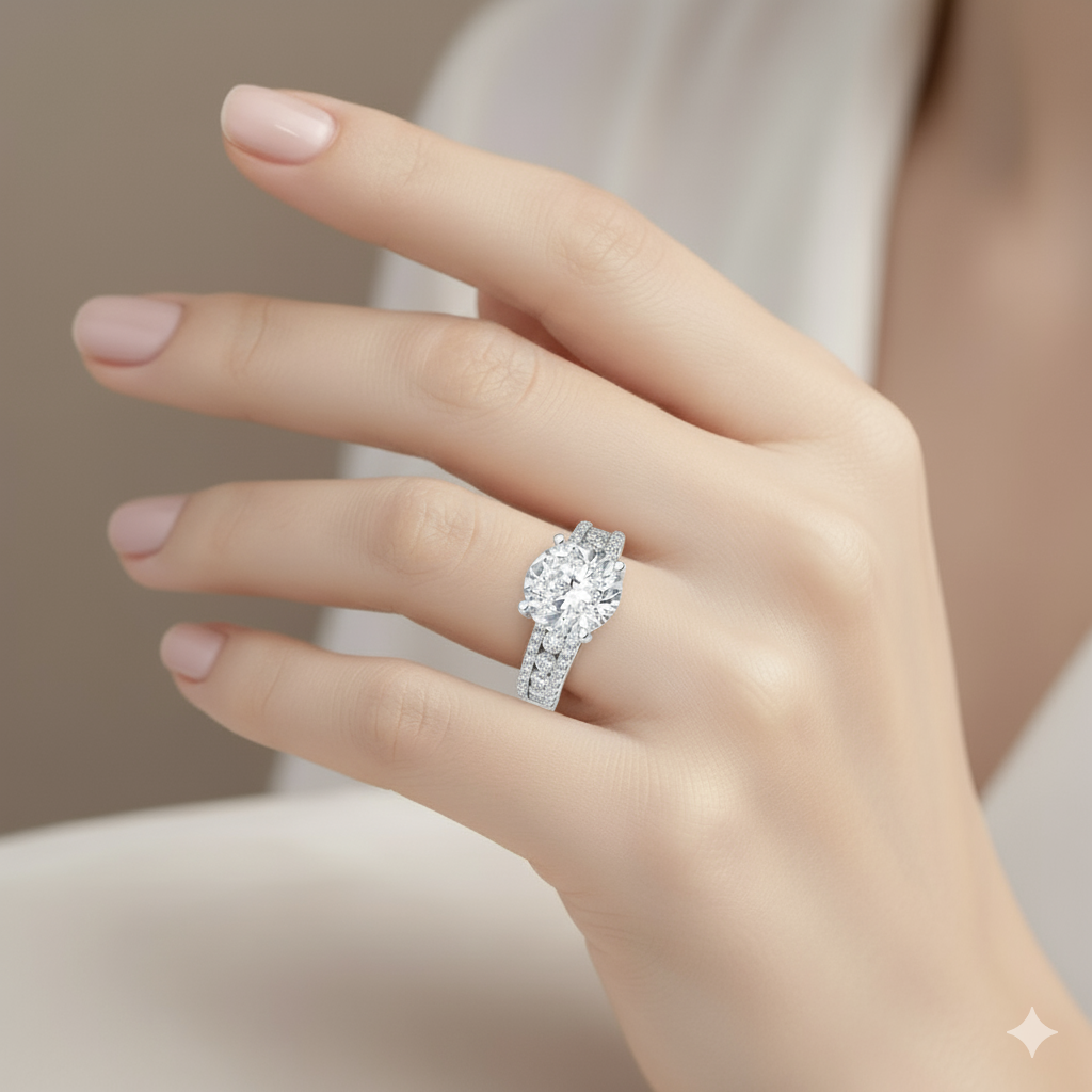 Choosing this ring allows you to express your personal style while embracing sustainability. Moissanite, being a lab-created gemstone, offers an ethical and environmentally friendly alternative to mined diamonds, allowing you to showcase your love without compromising on your values.